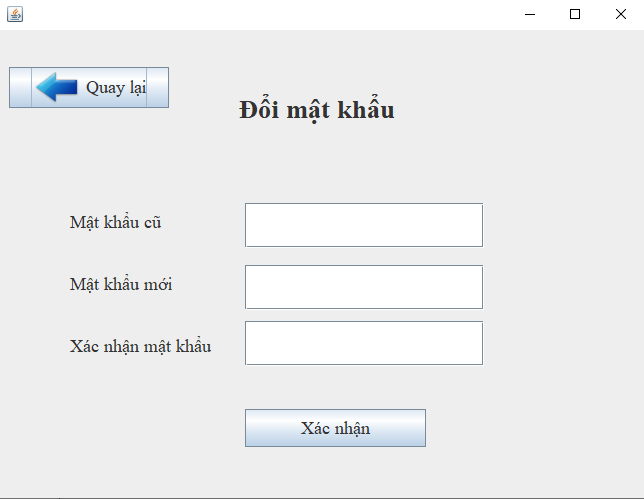 Đổi mật khẩu sẽ mở ra form DoiMatKhau